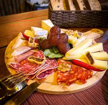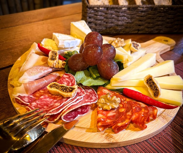 Serrano ham, Spanish salami, ham, Spicy Spanish chorizo, Pâté en croûte (Traditional French pâté)